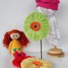 - Šarena aplikacija za lutku s detaljnim akcentima od pređe
