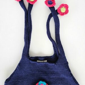 Mekana pletena tkanina je nježna na koži i omogućava lako kretanje. Naramenice se vežu na vrhu, tako da možete prilagoditi veličinu kako vaše dijete raste. Torbica je lagana i jednostavna za nošenje, dizajnirana za male ruke.