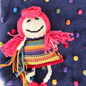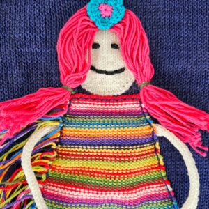 - Šarena aplikacija za lutku s detaljnim akcentima od pređe